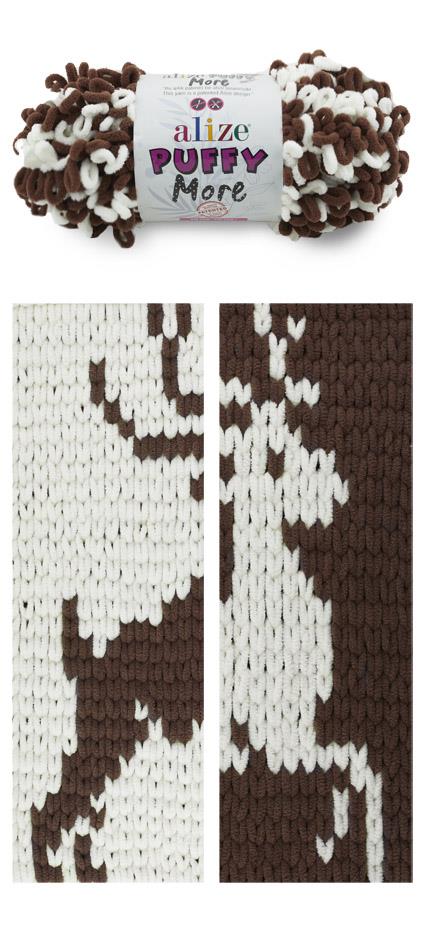 Puffy More is the latest yarn from the Alize Puffy family. This puffy version not only offers patented knitting without needle (finger knitting yarn), but also a unique and refined knitting experience with which you get reversible images with reverse colours on the back. You can create magical patterns, mosaics or pixel patterns with this yarn. Knitting with your fingers is super easy.