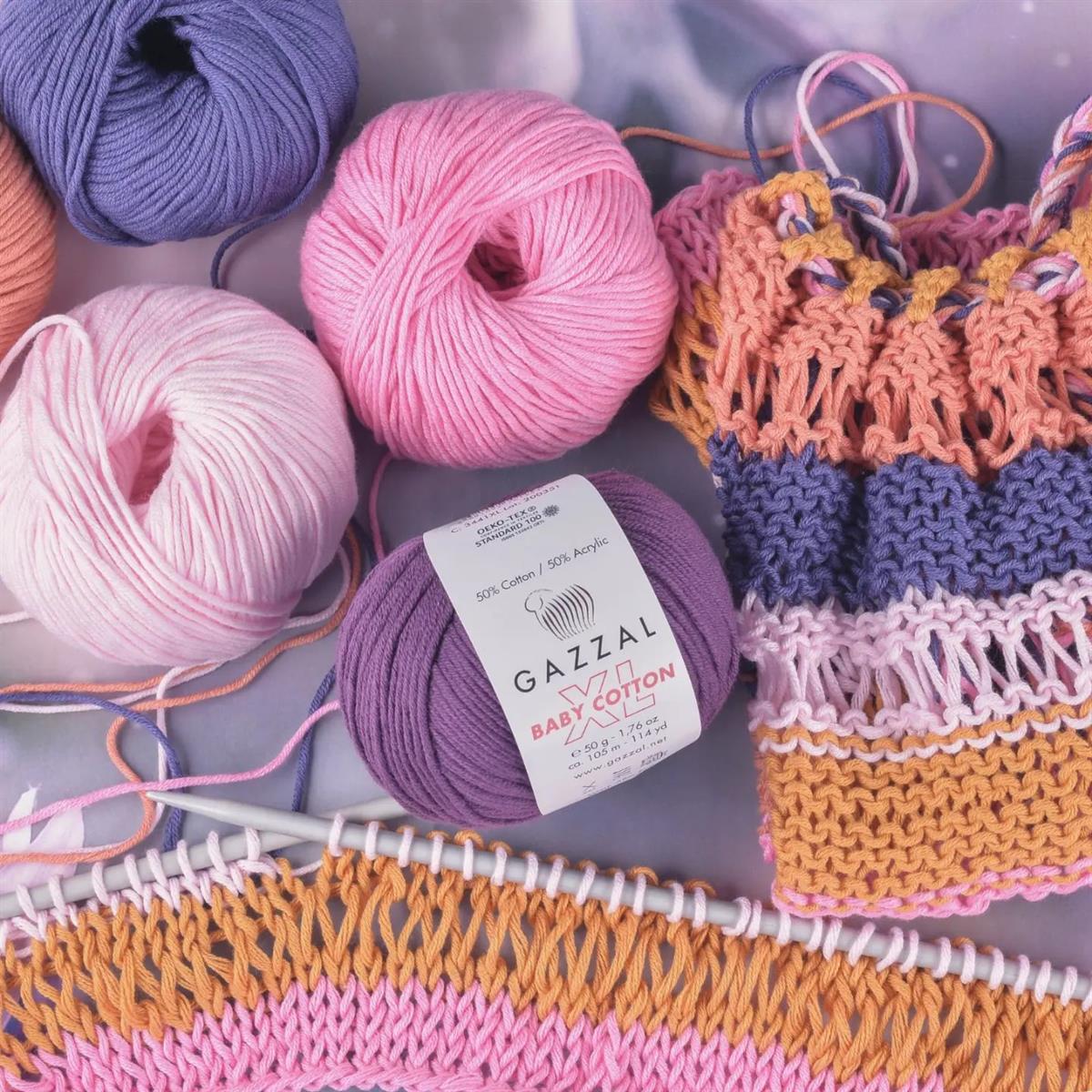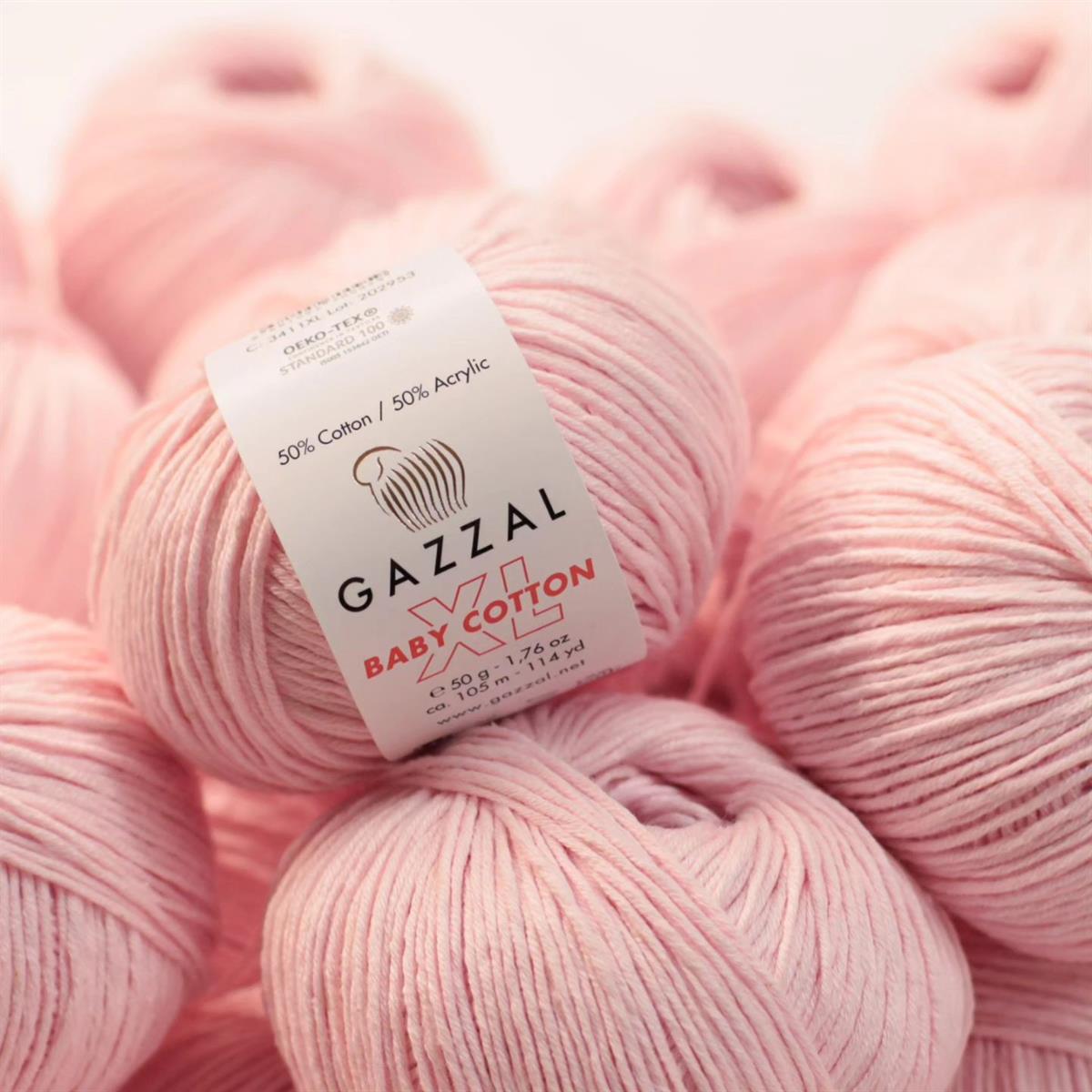 Produced as an alternative to Gazzal Baby Cotton series, XL is a thicker yarn. Gazzal Baby Cotton, which has an extremely soft, smooth and high quality knit, is a yarn that you can safely use especially in all baby knit models with its 50% cotton content, and that you can knit with pleasure both with needle and crochet due to its thickness.